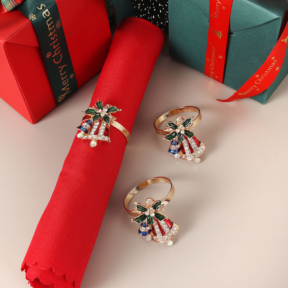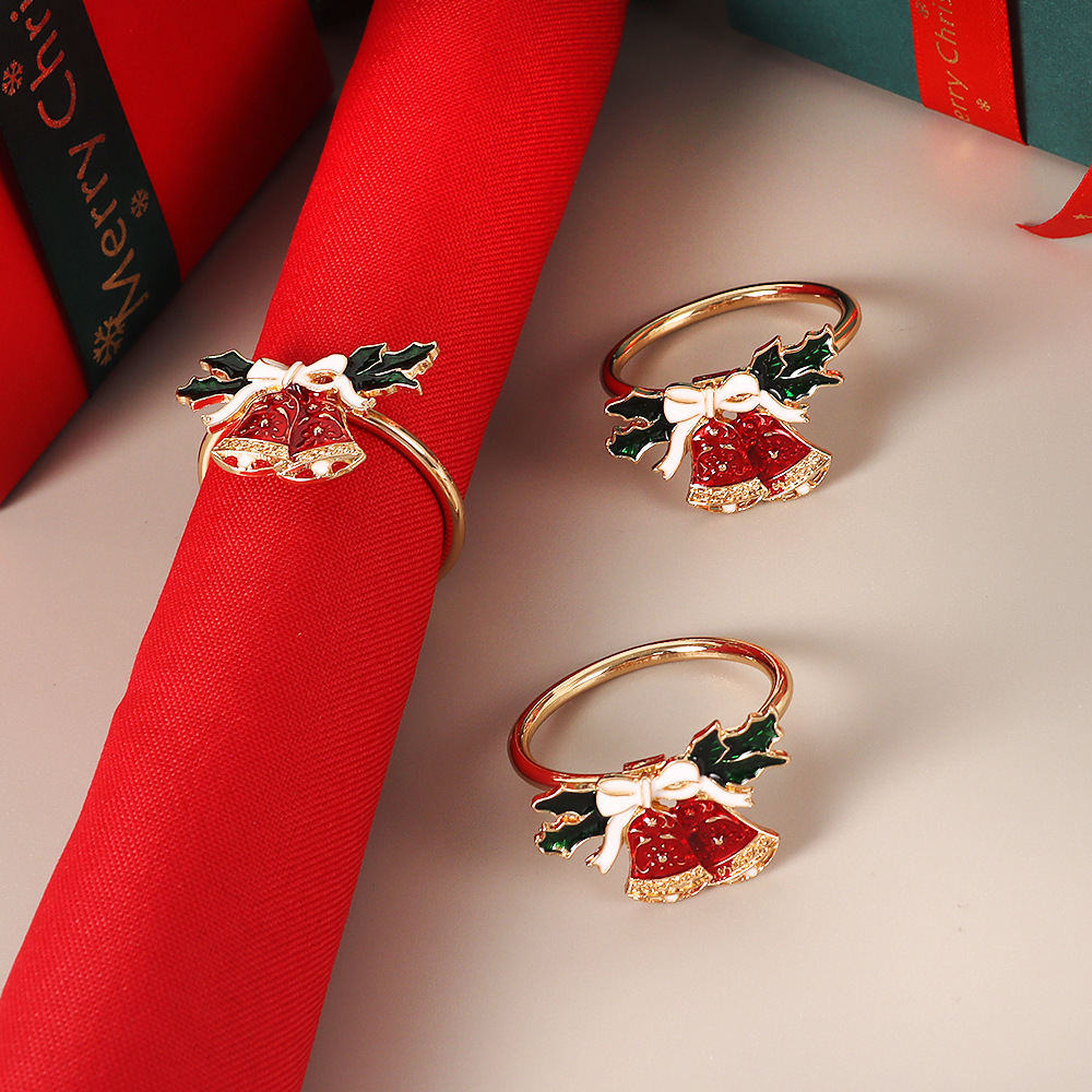 欧米の絵の油の蝶結びの赤いクリスマスの鈴のナプキンの環のレストランの食器はナプキンのボタンのメーカーの卸売りを飾ります。
