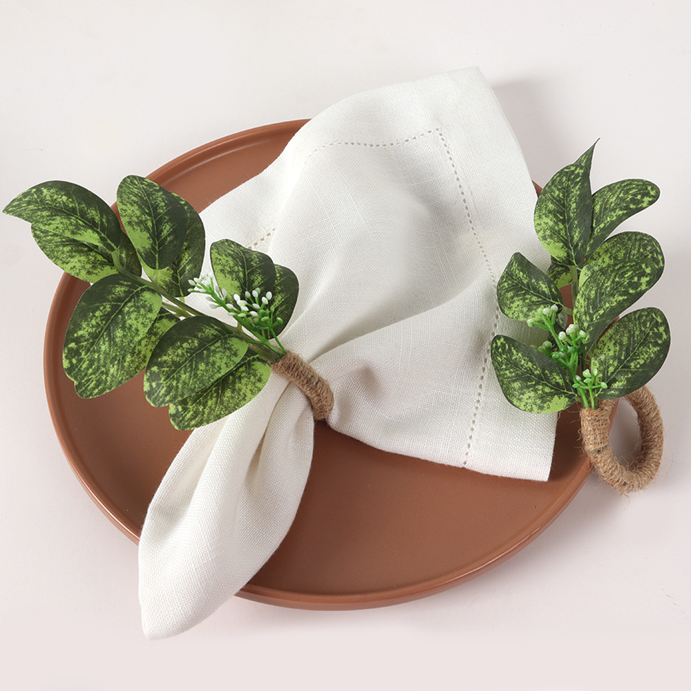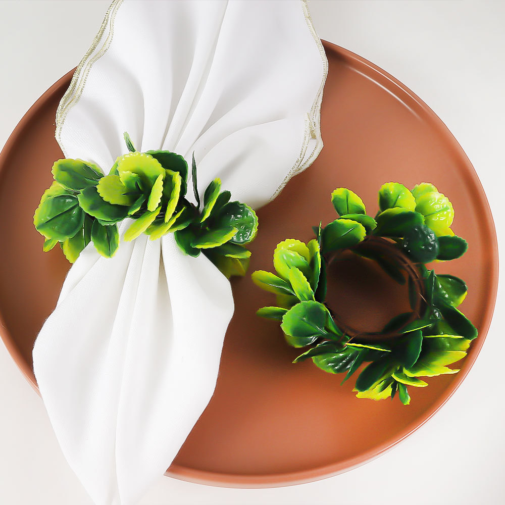 クロスボーダーのシミュレーション緑の植木リングのナプキンリングのサンプルプレートの間の結婚祝いの置物台の装飾のナプキンのボタンの手織りのナプキンリング