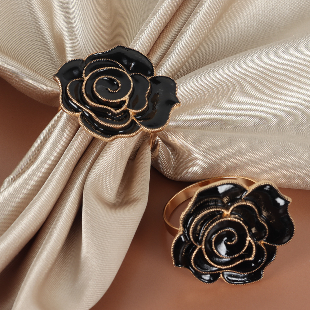 バレンタインデーに油を垂らしたバラのナプキンリング合金メッキホテルの置物金属創意ナプキンメーカーの卸売り