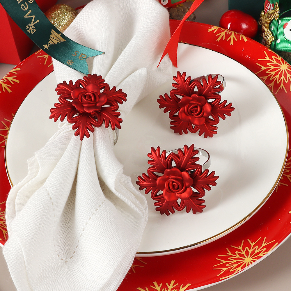 国境を越えた新しい赤いクリスマスシミュレーション花ナプキンリングホテルは金属ナプキンを飾ってクリスマスのナプキンを掛けます