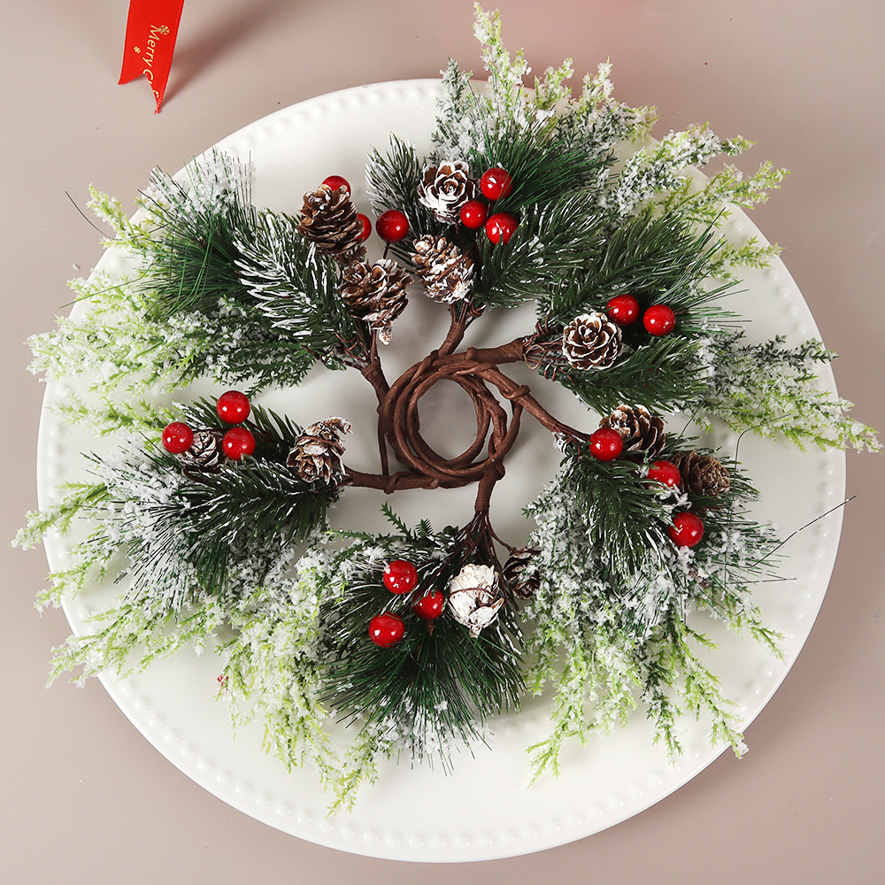 国境を越えた新しいクリスマス松果シミュレーション植物紅果ナプキンリングホテルのアイデア麻布ナプキン卸売り