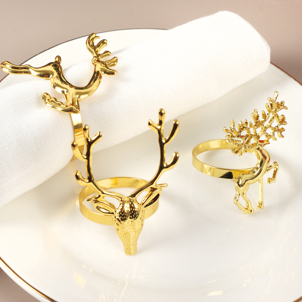 欧米のクリスマスの鹿のナプキンの環のレストランの鉄の質は金色の鹿の頭のナプキンをめっきしてホテルを掛けてテーブルのナプキンの輪を並べます。