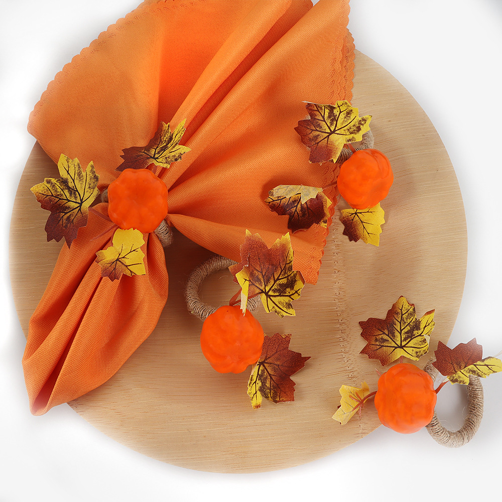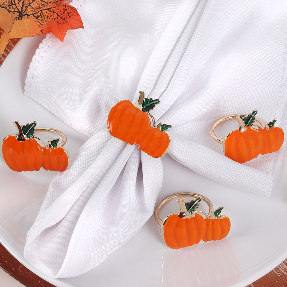 国境を越えた新しい手作りカボチャのナプキンリングハロウィーンのテーブルを飾ってホテルのナプキンリングを飾る