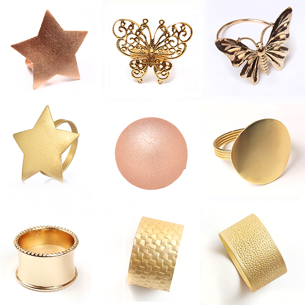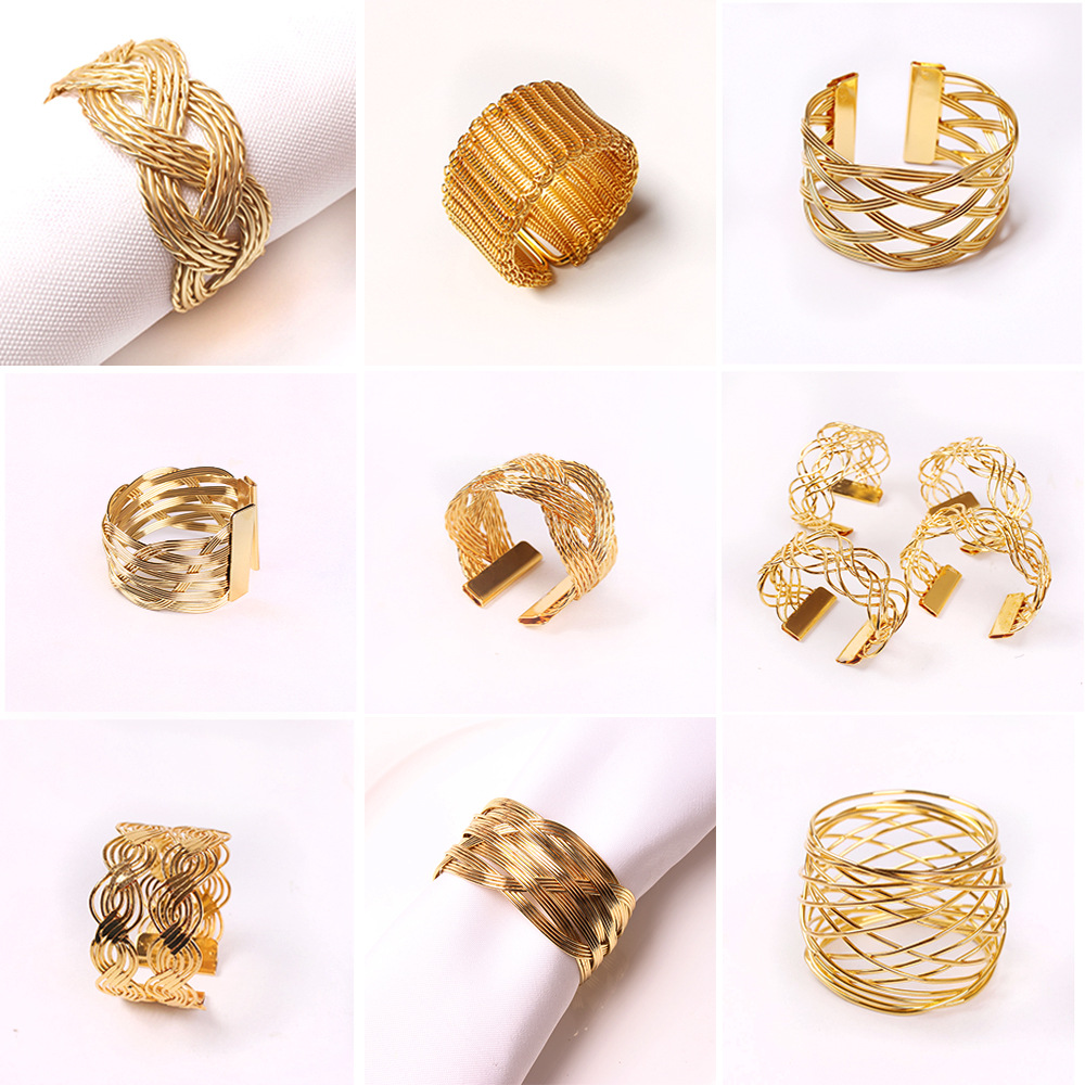 欧米の国境を越えた幾何学はシンプルで創造的なナプキンリングのウェディングテーブルに飾られたナプキンはレストランのナプキンリングを掛けている