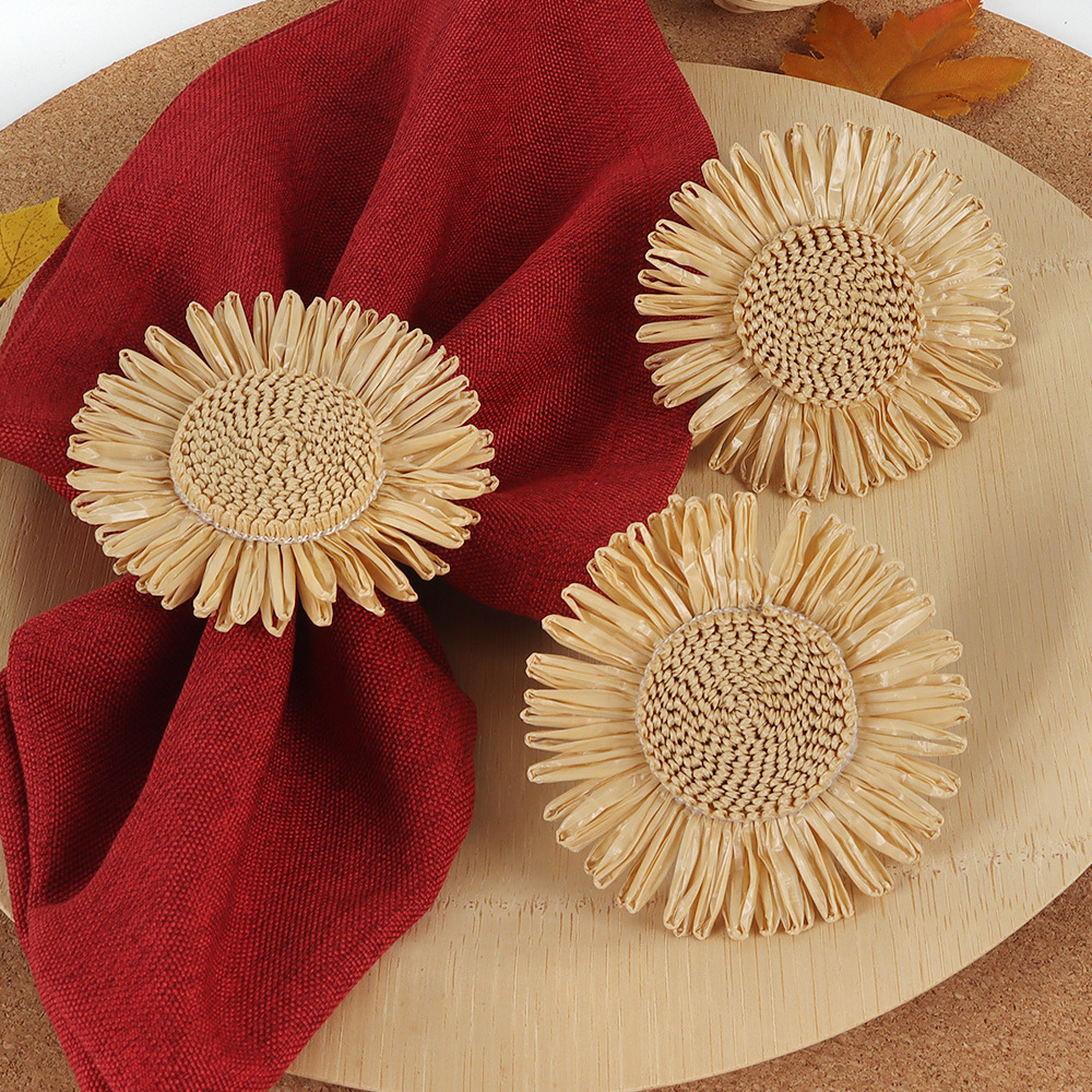 創意的な立体手作りの太陽の花のナプキンリングホテルのレストランの装飾はひまわりのナプキンを飾って口の輪を掛けます。