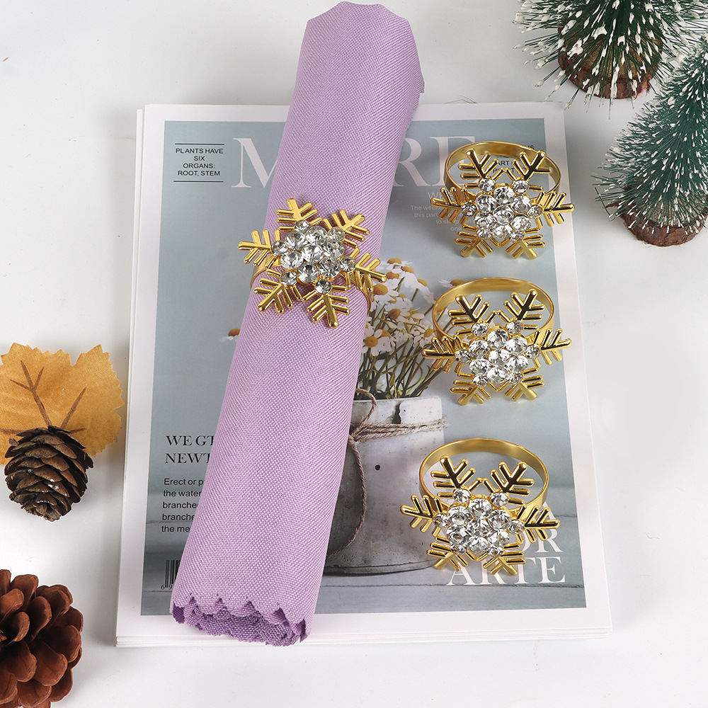 新商品の創意クリスマスシリーズの雪のナプキンリングの合金はドリルのナプキンリングの口のリングのホテルの食卓の装飾を入れます。