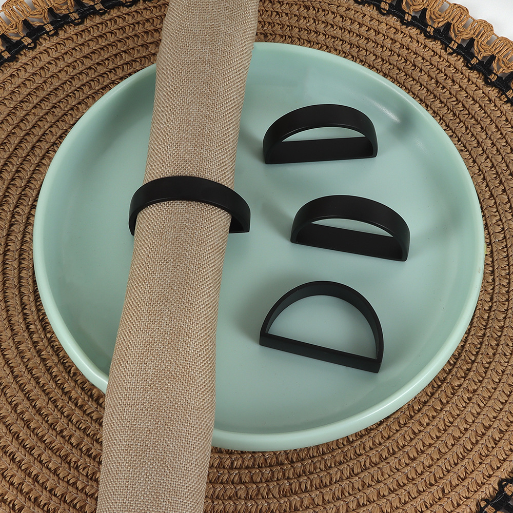 洋風シンプルd字黒ナプキンリング金属幾何学ナプキンボタン口布リングホテルレストラン装飾置物台
