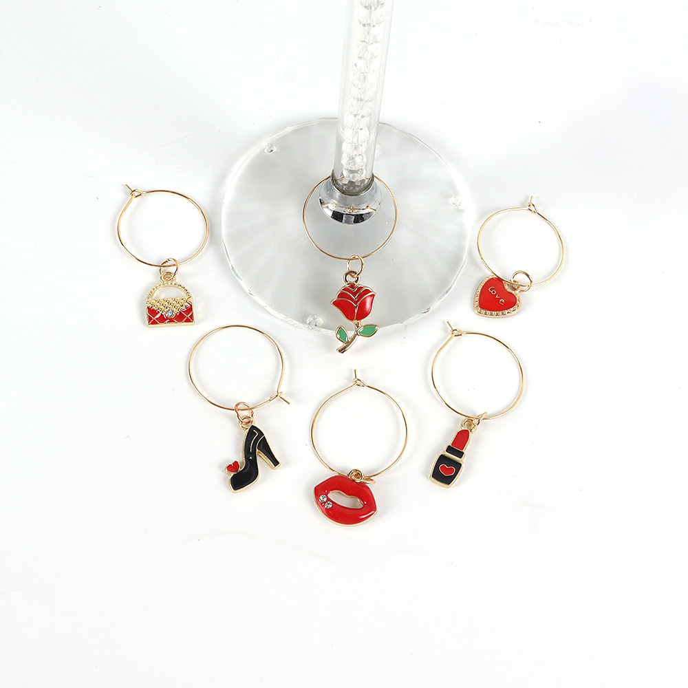 アマゾンの創意的な新しい愛の口紅ハイヒールのワインカップのリングは家庭のバーのパーティーの杯の区別器を掛けます。