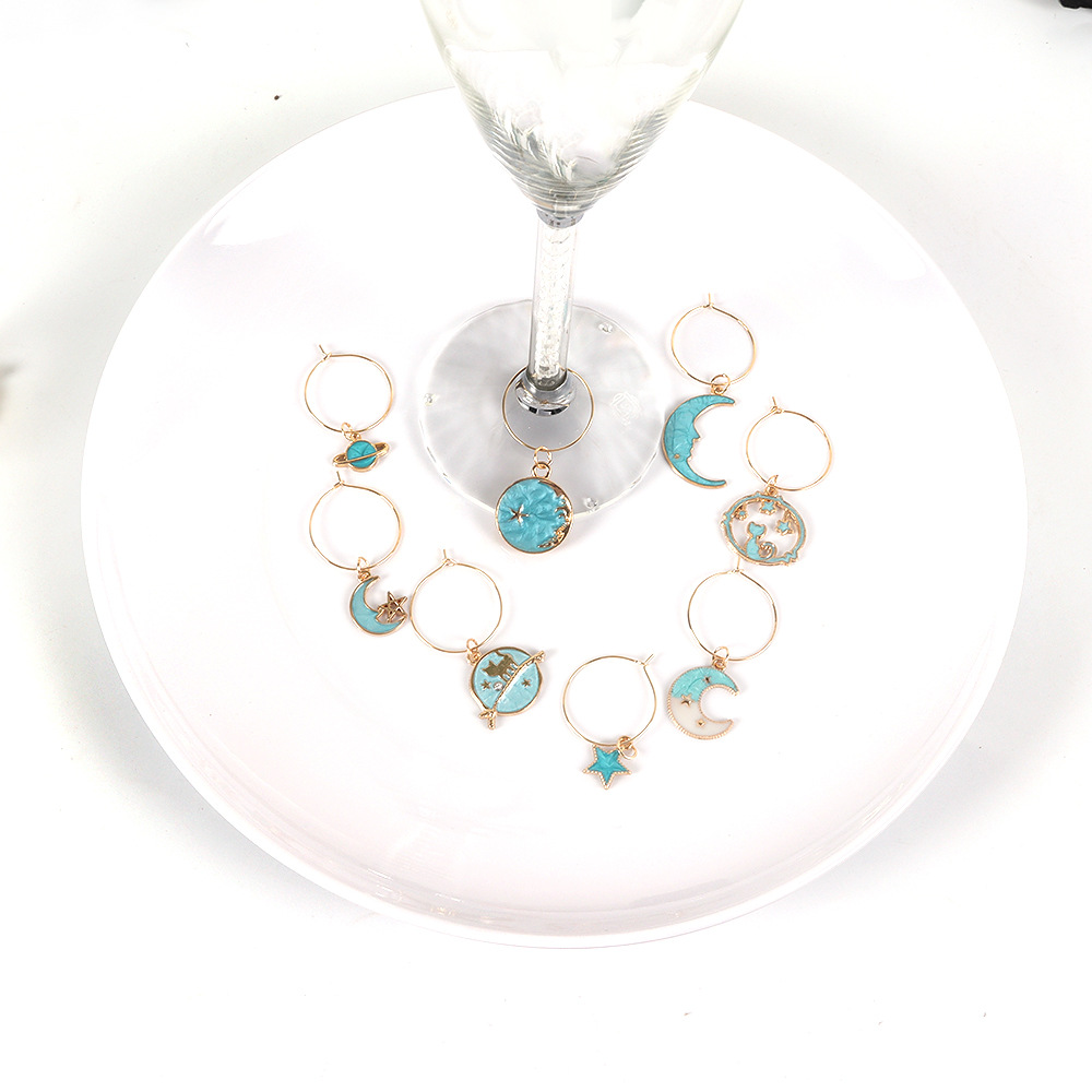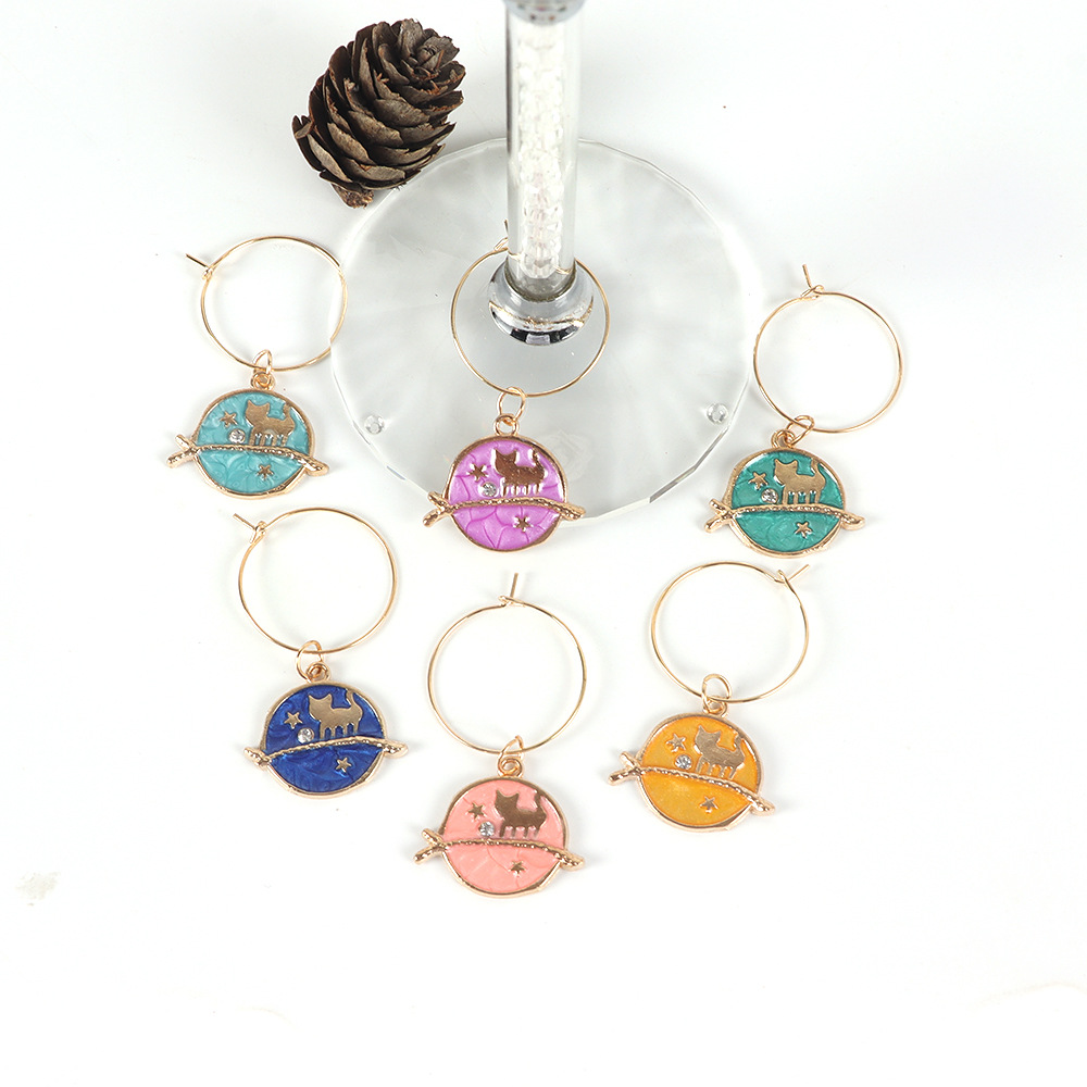 クロスボーダー新品ブルードリップワインカップリングセットクリエイティブ星空猫宇宙亜鉛合金グラス識別器現物