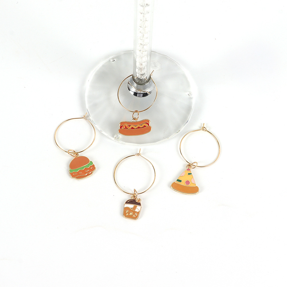 クリエイティブ漫画ハンバーガーホットドッグピザコーヒーカップリング現代シンプル合金グラス識別器工場スポット
