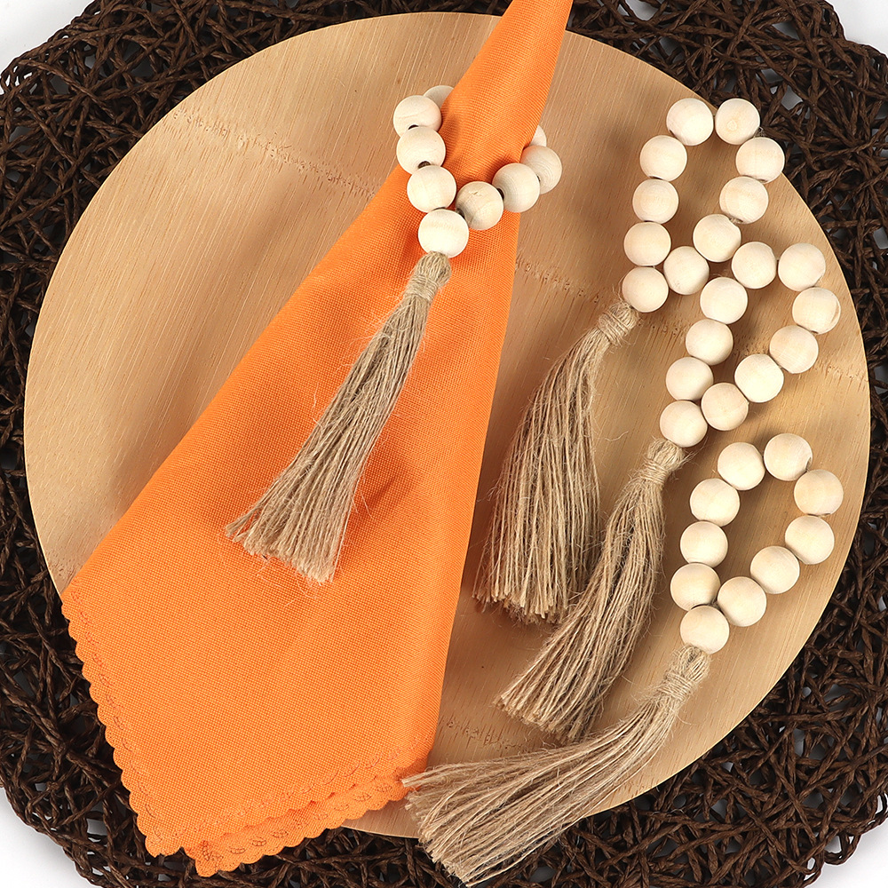 国境を越えた新しい麻縄編み木珠流蘇ナプキンリングホテルは創造的なナプキンを飾って家庭の食器を飾っている