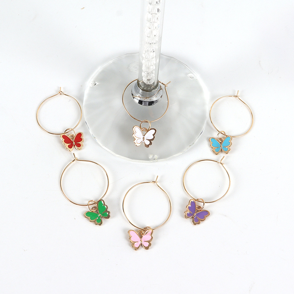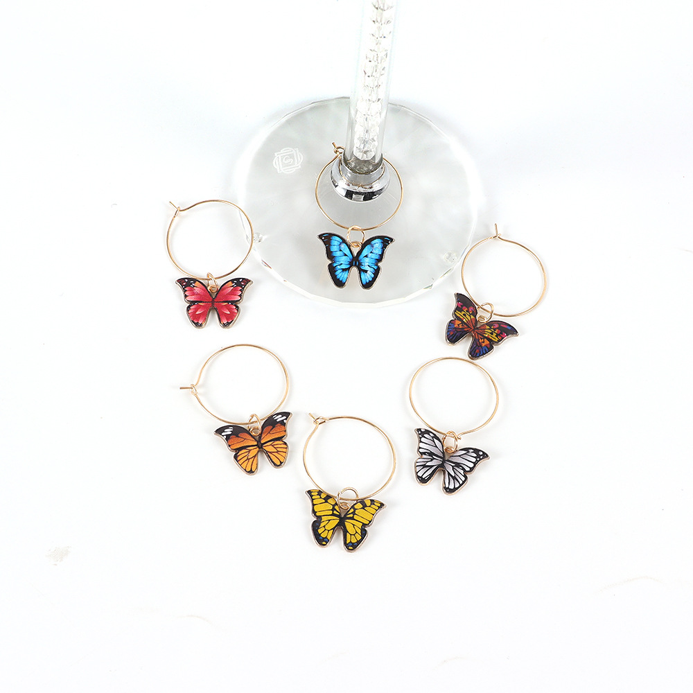 現代のシンプルな創意蝶酒杯環バーパーティーカップ識別器ワイングラス高足カップペンダント