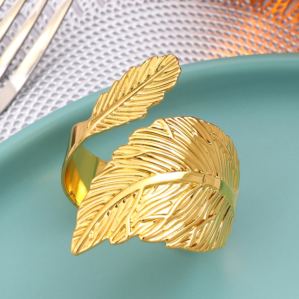 国境を越えた新製品巻き木の葉合金開口ナプキンリングシミュレーション植物ナプキンホテル振り子テーブルナプキンリング卸売り