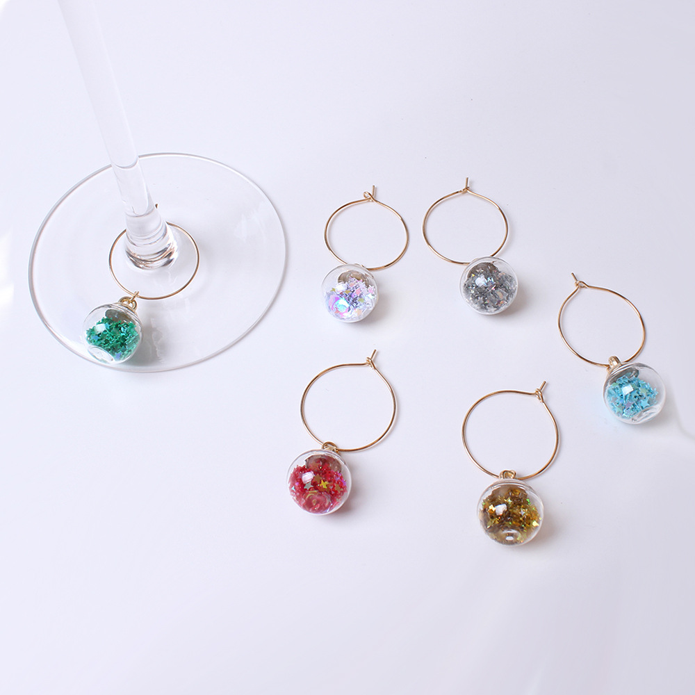 越境新品創意フロストカラー丸瓶金属酒杯環高足杯ストラップ装飾環杯識別器