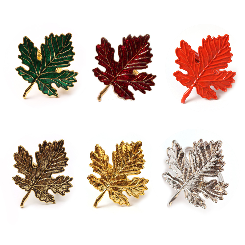 アマゾンの新しいレトロなナプキンリングヨーロッパ式の金色のカエデの葉のナプキンはホテルのレストランのナプキンリングの口の輪を掛けます。
