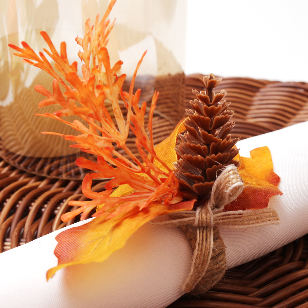 クロスボーダー手織りかぼちゃカエデナプキンリングハロウィーン模造花飾りナプキンリング感謝祭ナプキンバックル