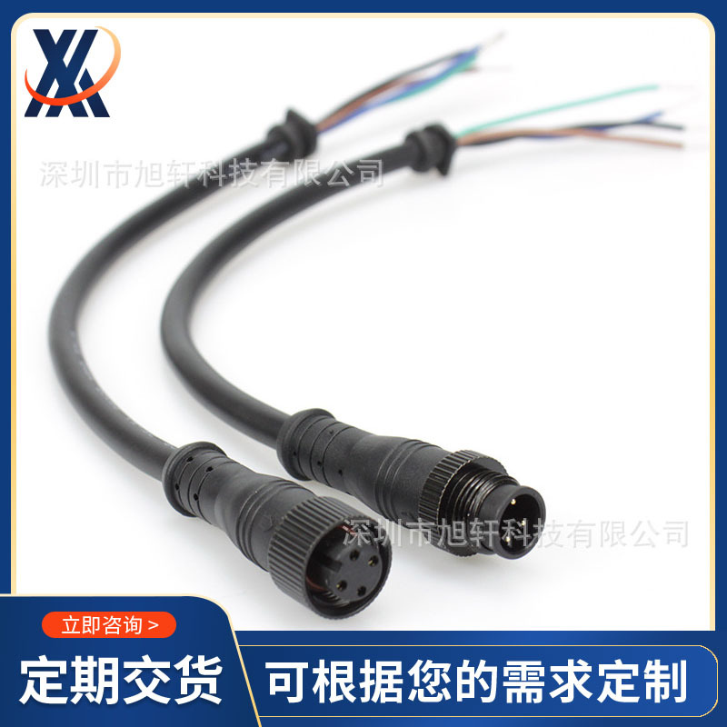 M12A型公母对接线2芯-8芯工业自动化防水传感器信号线防水线缆