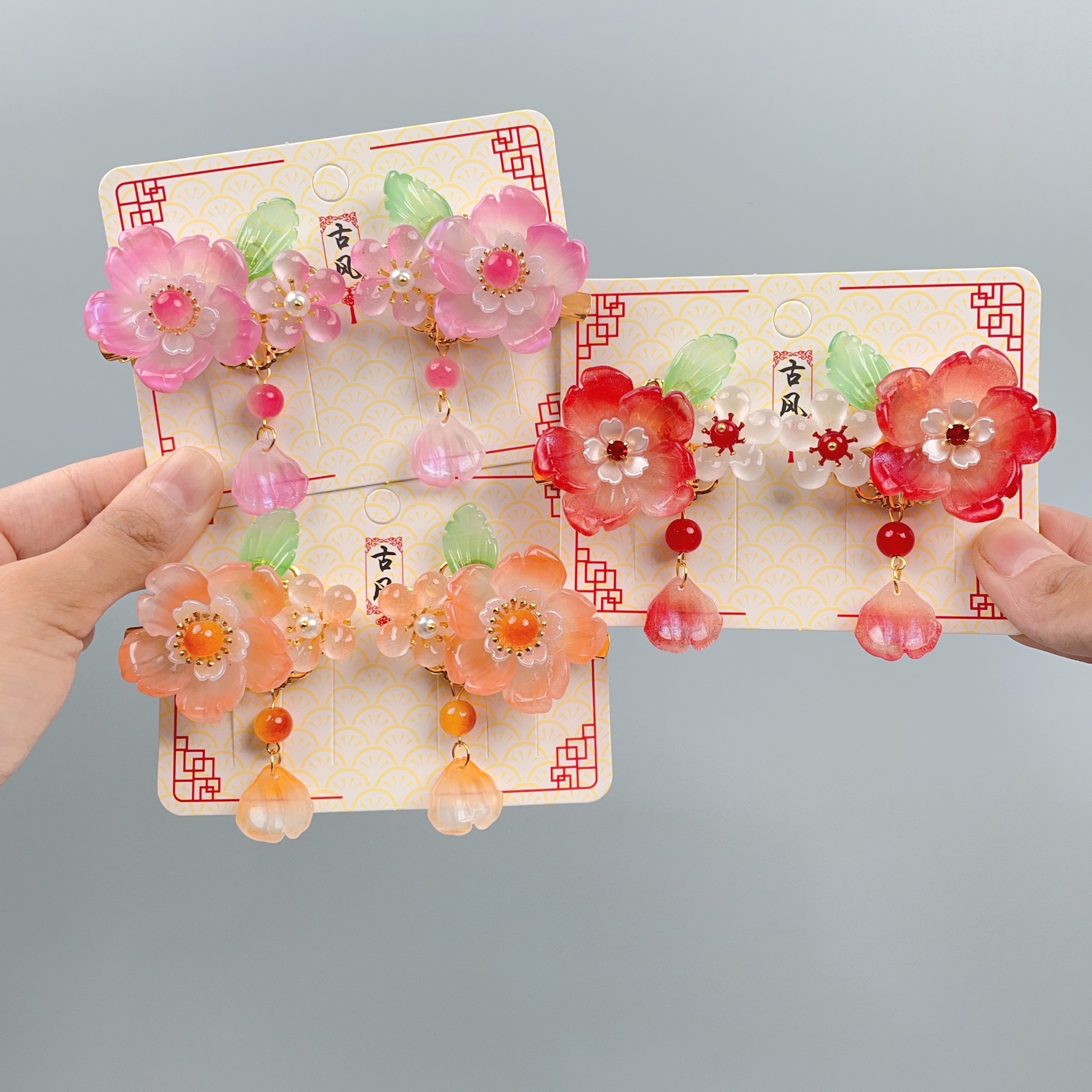 子供の髪飾り中国風かわいい古風ヘアクリップ新年のお祝いの漢服の頭飾り赤い新年の対クリップケース