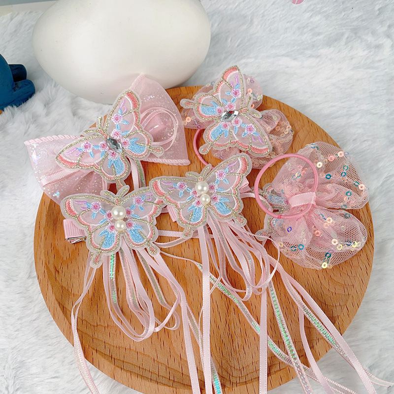 女の子の大きいサイズの蝶の漢服の頭飾りの古風な髪飾りの子供の時代の刺繍の髪飾りの女の子の唐服のアクセサリー
