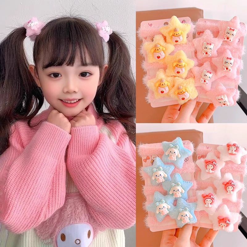 秋冬のぬいぐるみの星のひもの女性の子供は髪の毛を刺します。