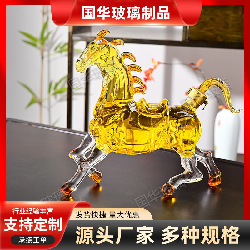 馬の形の酒の瓶の12生肖の酒の瓶の高ホウ素のシリコンのガラスの酒の瓶のガラスの形の酒の瓶の置物