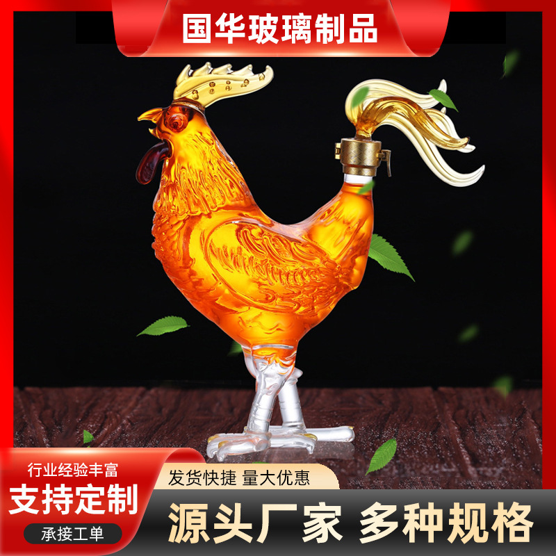 雄鶏の形は酒のガラス瓶の透明な人参の酒の瓶の2斤を入れて雄鶏の酒の瓶の12生肖の酒の瓶を浸します。