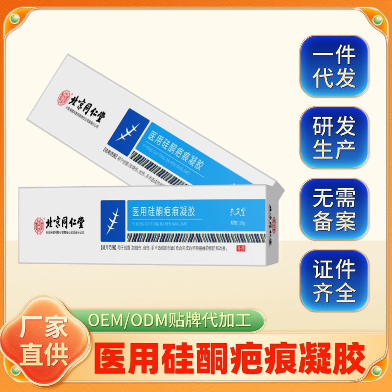 北京同仁堂内廷で孔艾堂医療用シリコーンの傷跡ゲルを使って火傷を修復します。