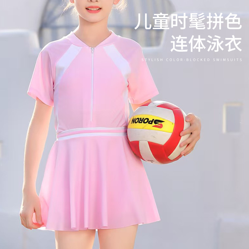 女児半袖日焼け止めワンピース水着子供用水着水着小童速乾女の子中大童水着