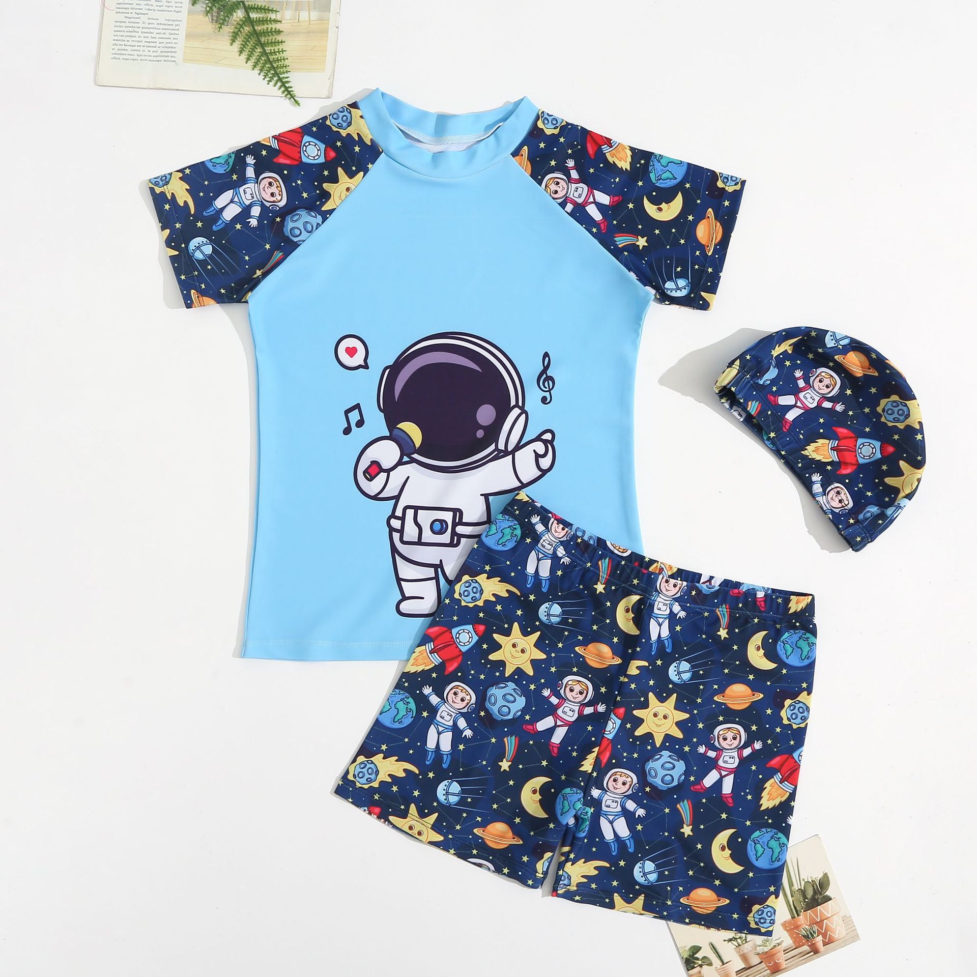 子供の水着の新型の男の子の夏の日焼け止めの速乾性の水着の中で大きい子供の赤ちゃんの分体の漫画の水着
