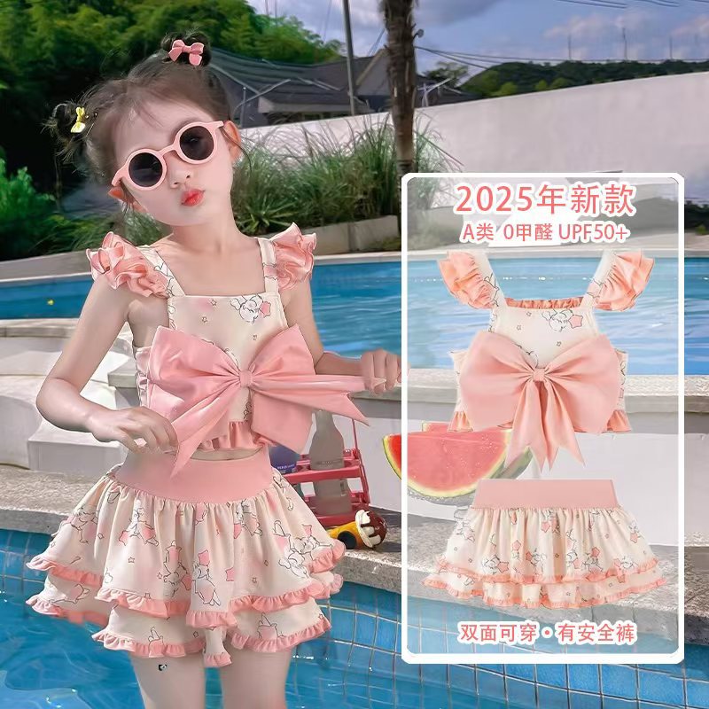 子供の水着の女の子の夏の小さい子供の王女の超仙2025新型のプリントスプリットの日焼け止めの水着の卸売り