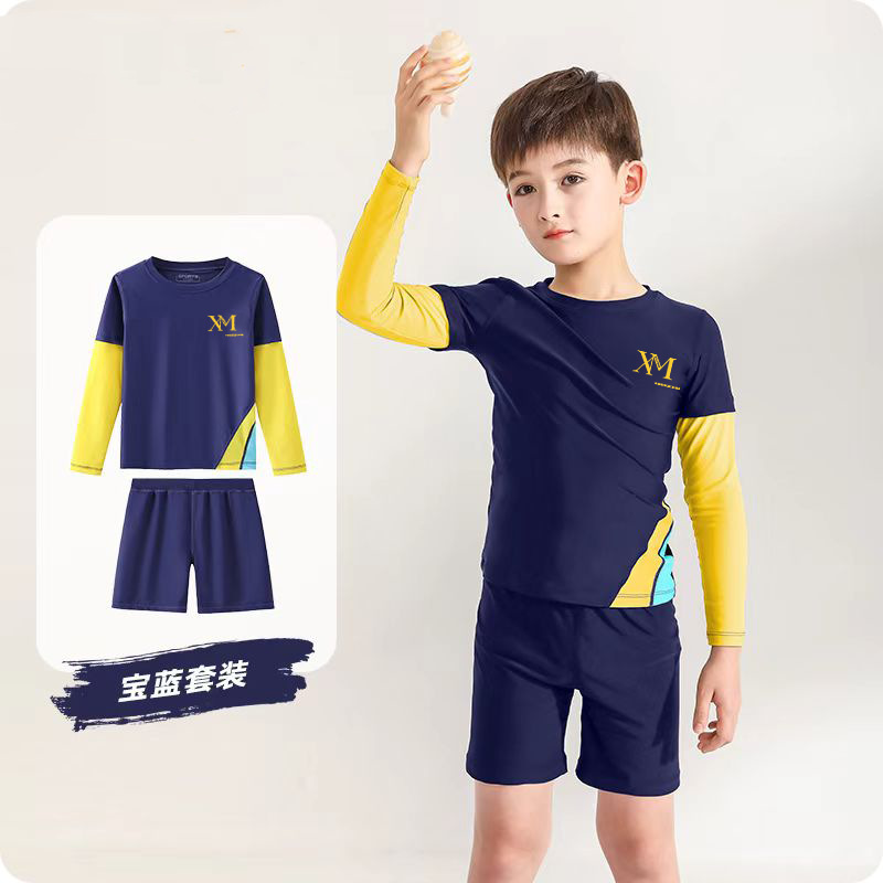 子供の分体水着2025男の太った子供のスポーツ水着の小さい中の大きい子供の学生の水泳のセットの装備