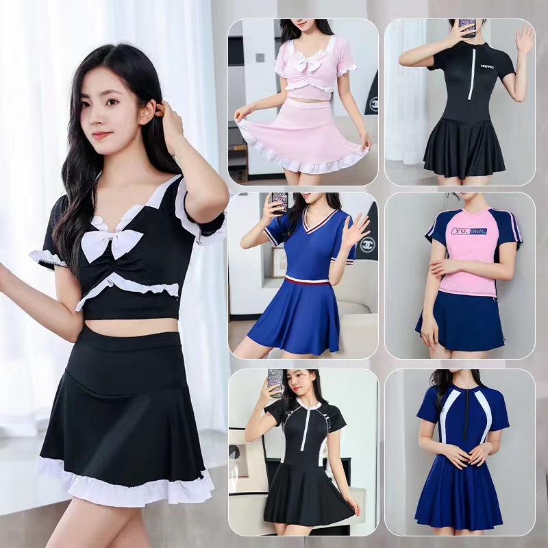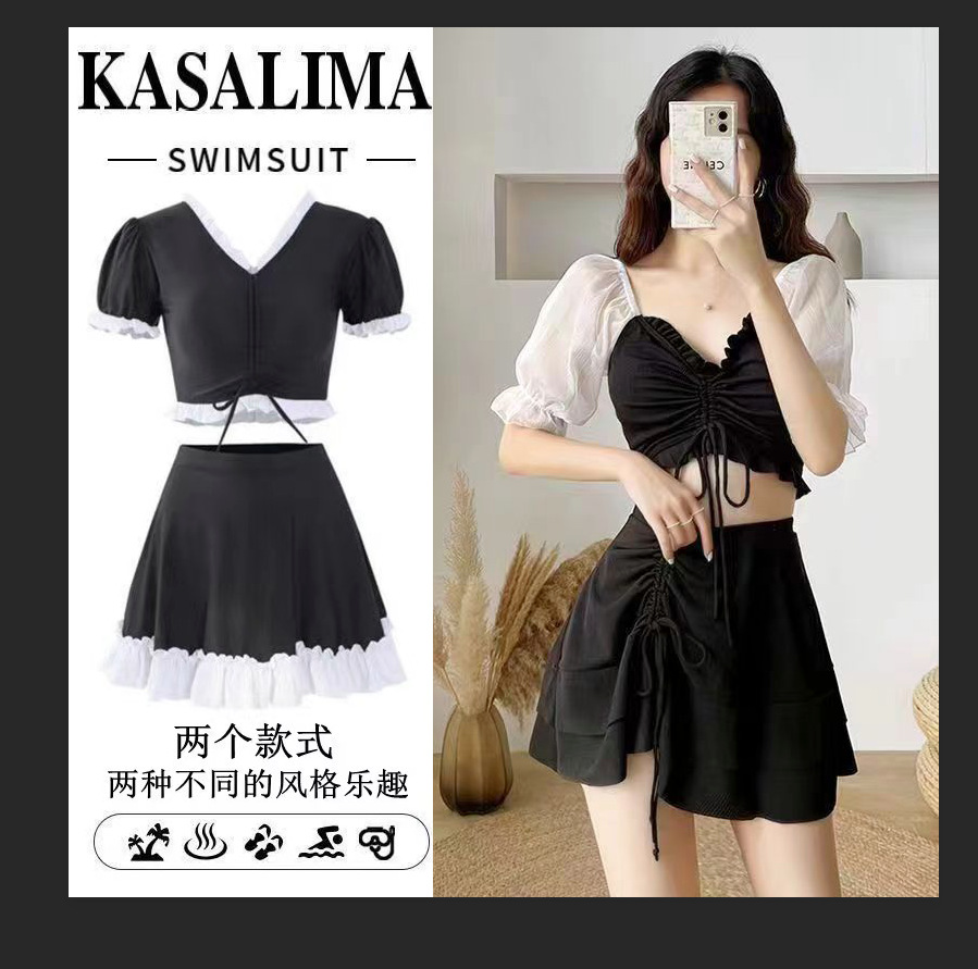 新型の夏の分体のスカート式の平角の水着の女性は保守的にやせている学生の小さい胸が集まって韓国版の小さい清新な水着を集めます。