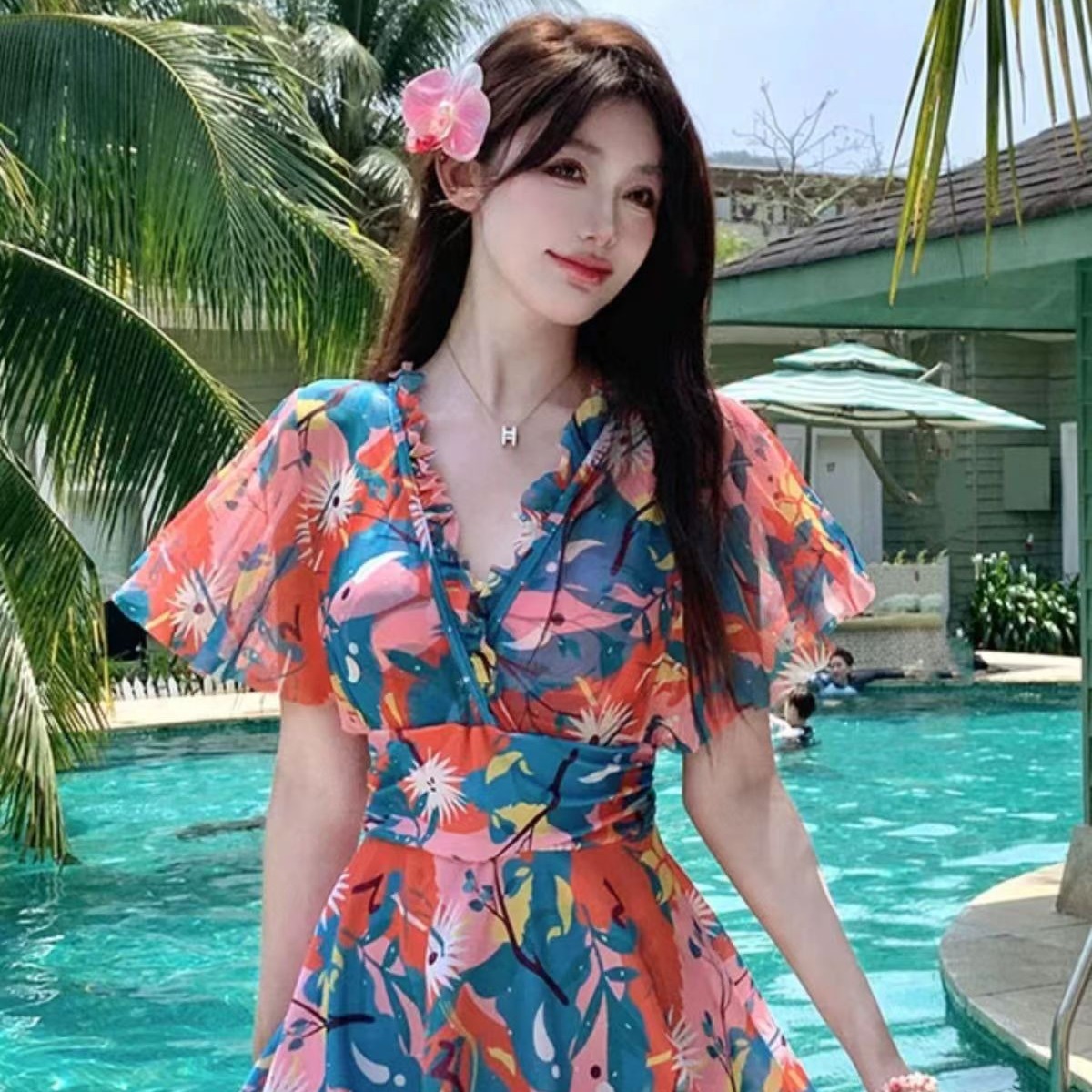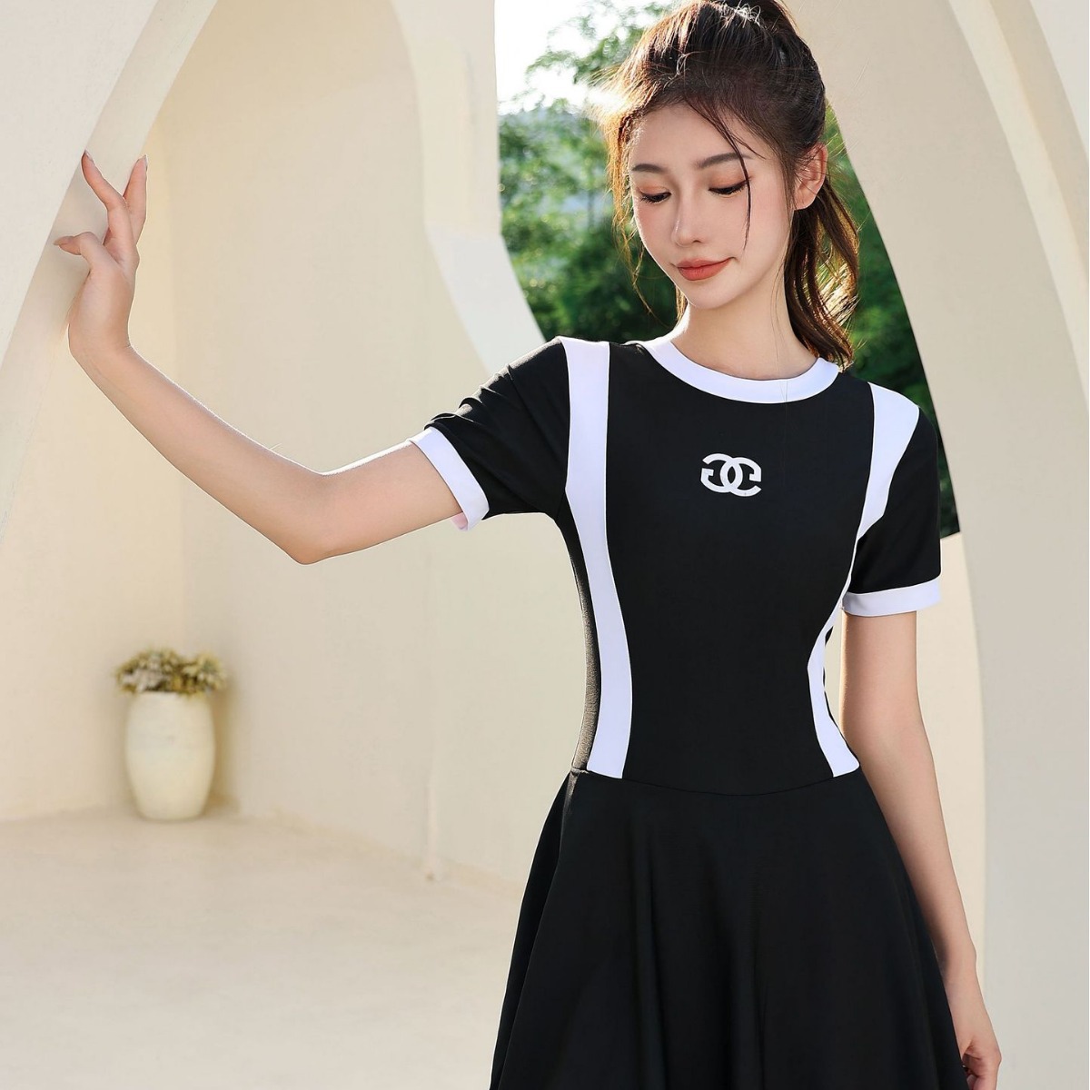 夏の新しいファッション保守的なワンピーススカートスタイル痩身セクシーな女性の温泉小さな胸プッシュアップ休暇無地水着