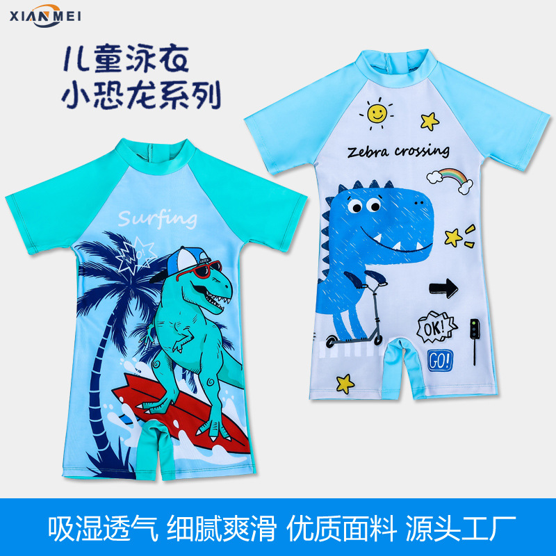 子供の水着の連体の男の子の恐竜の韓国の子供の赤ちゃんの温泉の速乾の赤ちゃんのかわいい日焼け止めの水着