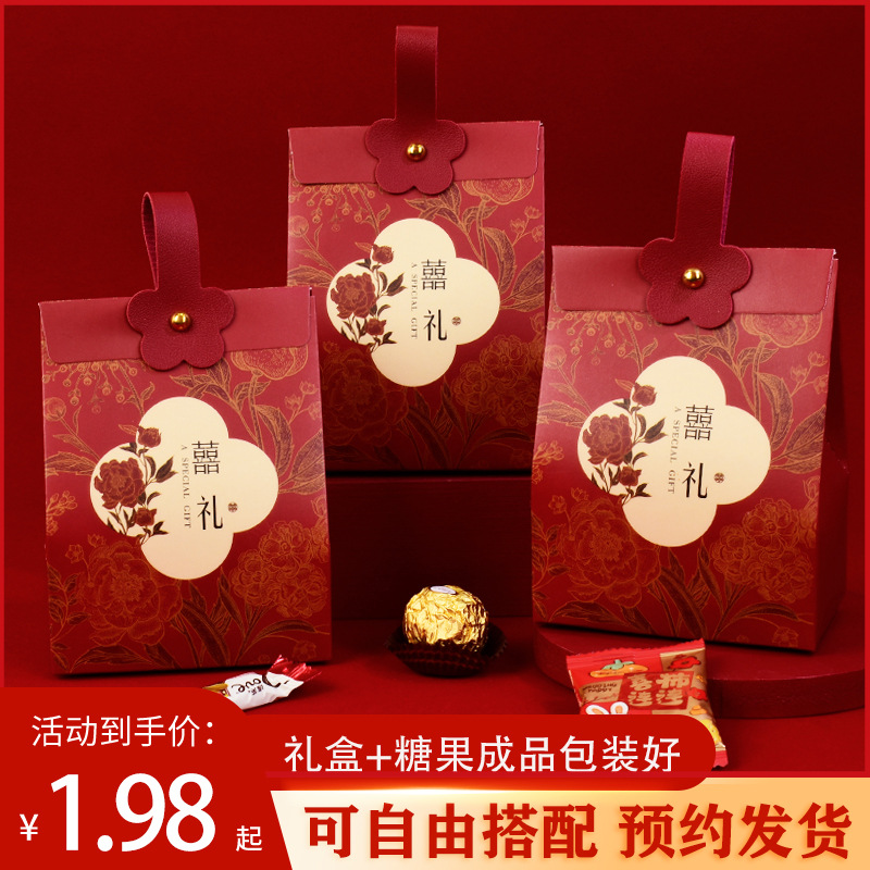 結婚喜糖完成品含糖礼箱中国風結婚式手提げ袋混合チョコレート含糖糖箱包