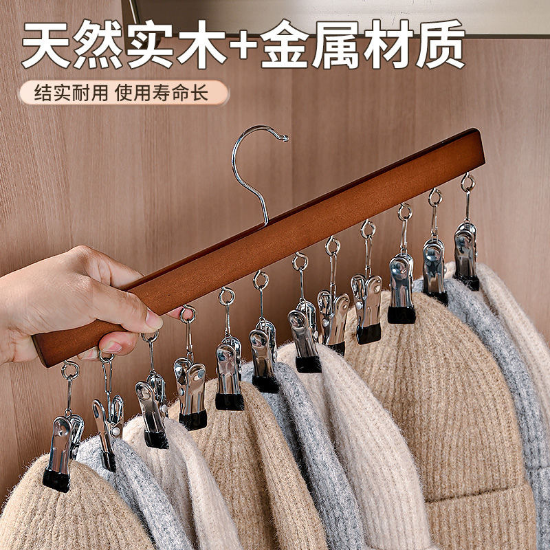 クロスボーダー木製ハンガー家庭用下着ベストストラップ収納多機能寮専用実木フック波干し