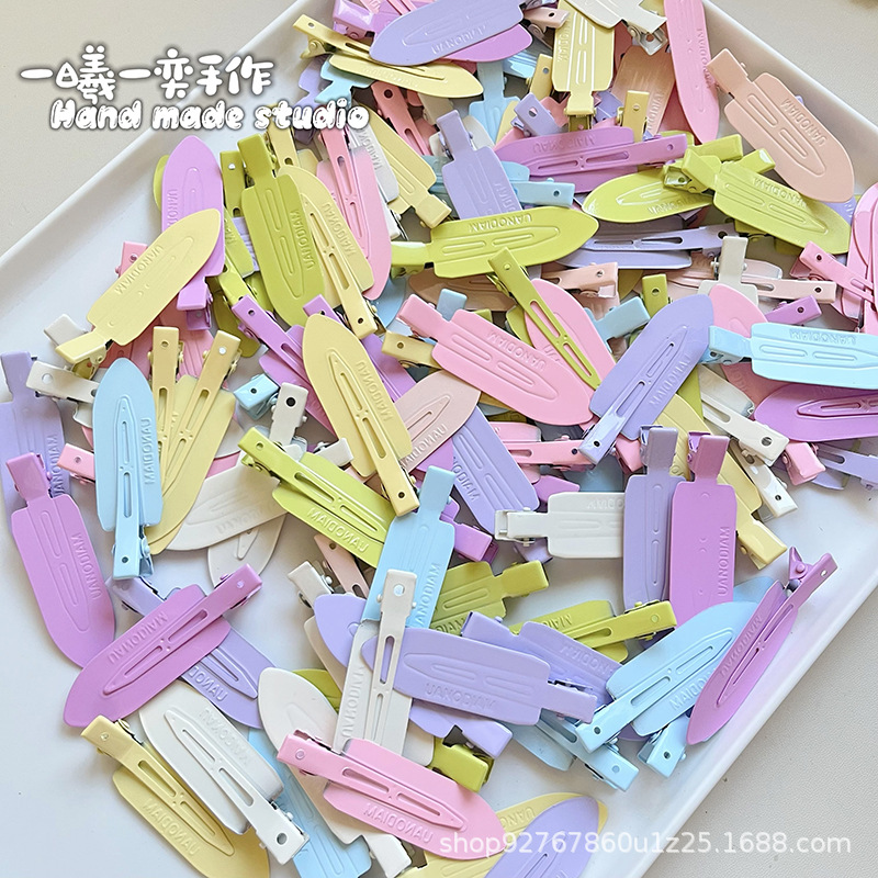 キャンディーカラーつや消しシームレスクリップ前髪クリップ diy クリーム手作りヘアクリップカモノハシクリップサイド前髪クリップヘアアクセサリー女性のための