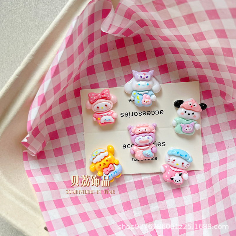 かわいい漫画パジャマ子犬diy樹脂アクセサリーサンリオクリームゴム携帯ケースキーホルダー材料パッチ