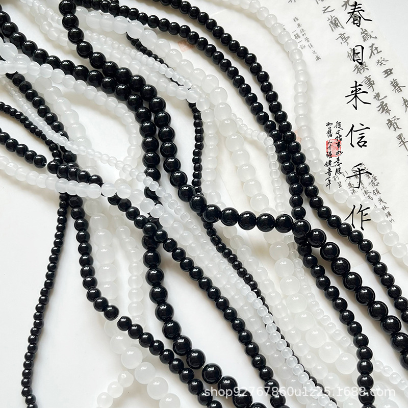 黒と白の 4/6/8 ミリメートルガラスペイントラウンドビーズ diy ルースビーズ古代スタイルのヘアピンビーズ半完成ビーズ