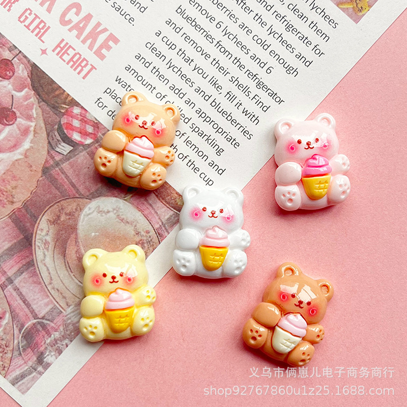 ミルクティーのケーキの熊のセットの漫画の樹脂の装飾品の部品のdiyの携帯の携帯の携帯電話のクリームのゴムの手作りの髪のクリップ