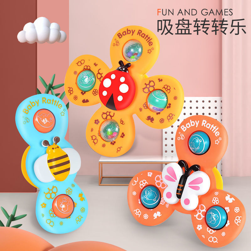 子供用吸盤回転ガラガラ回転花ベビージャイロおもちゃ0-1歳の赤ちゃん回転外国貿易
