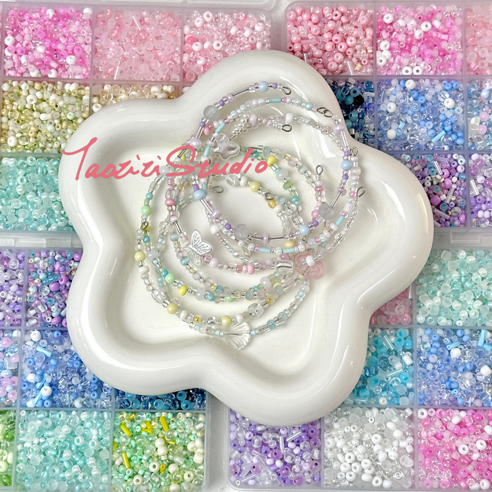 超優れた低飽和 12 グリッド混合色ガラスライスビーズセット diy 手作り素材ブレスレットネックレスアクセサリージュエリー