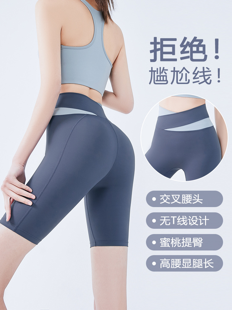 SLIMMO四分半ズボン女性高弾蜜桃尻タイツ夏の薄い運動速乾ヨガフィットネスパンツ