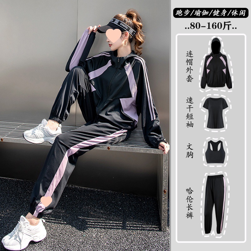 ヨガ服三点セット春夏天速乾ジムランニングゆるい大きいサイズフィットネスウェア着痩せスポーツスーツ女性