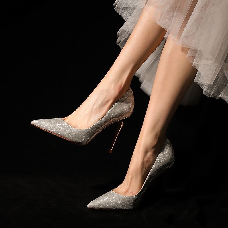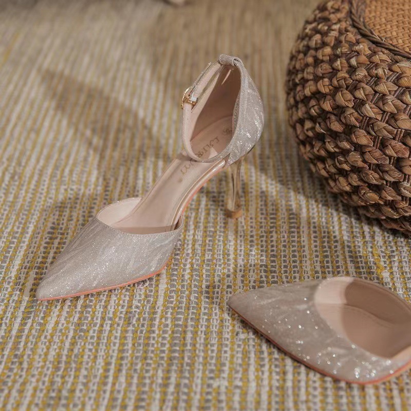 女性用サンダル 2025 新作夏アウターファインヒールポインテッドトゥウェディングシューズブライダルシューズ美しく疲れにくいハイヒール