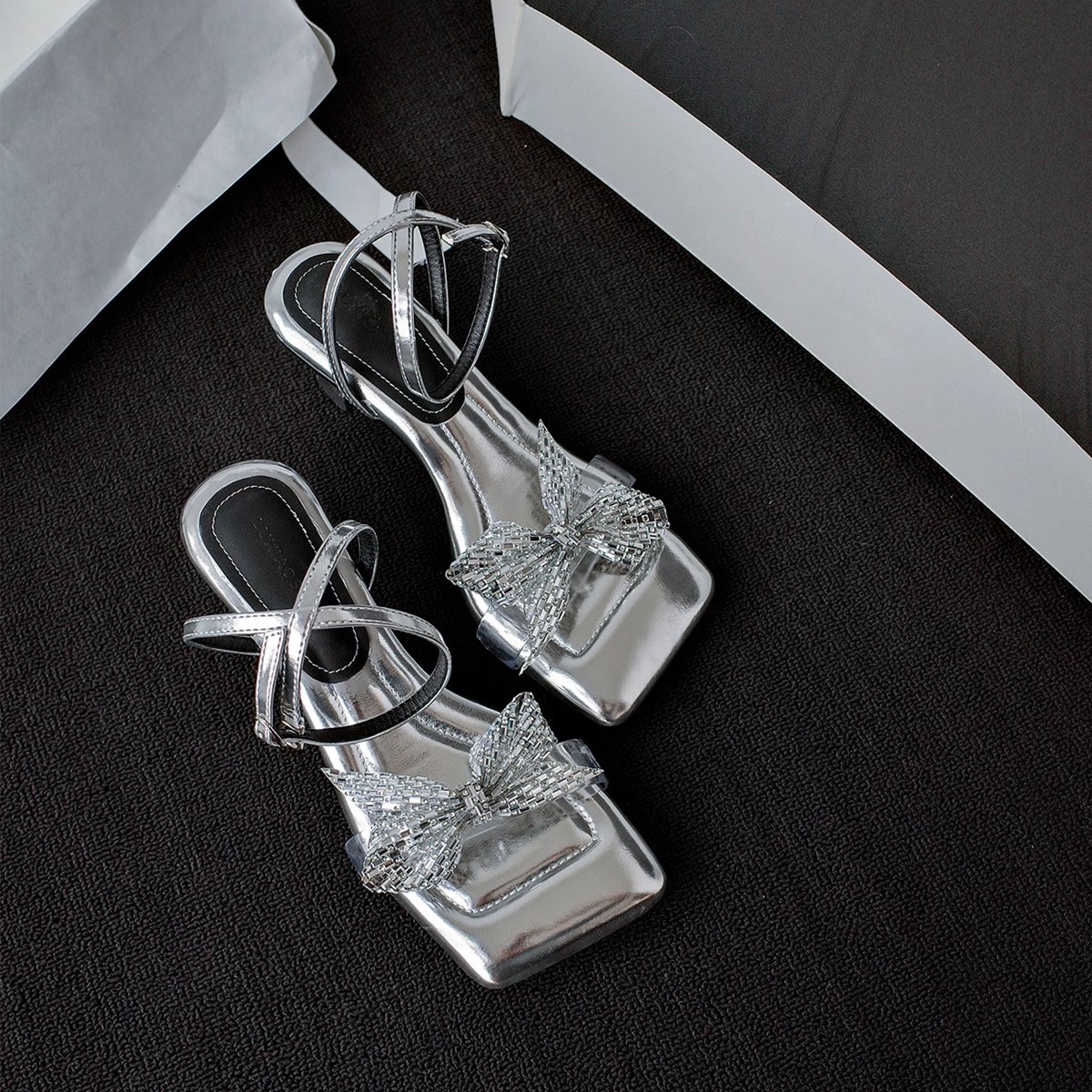 女性のためのハイヒールの靴 2025 夏の新しいスタイルのスクエアトゥラインストーンフレンチスリッパファッションローマンサンダル