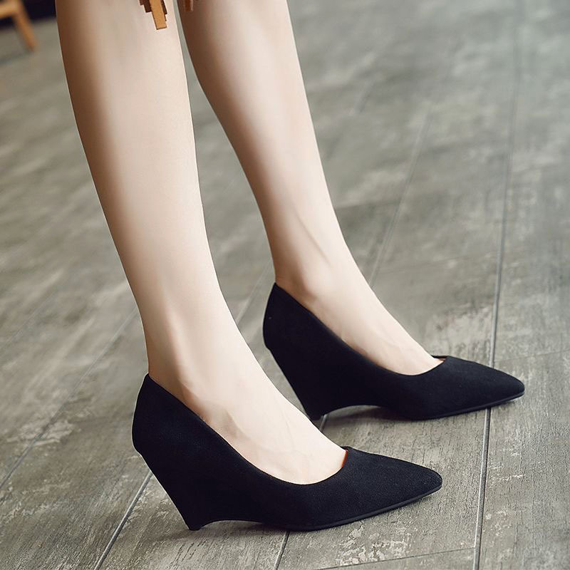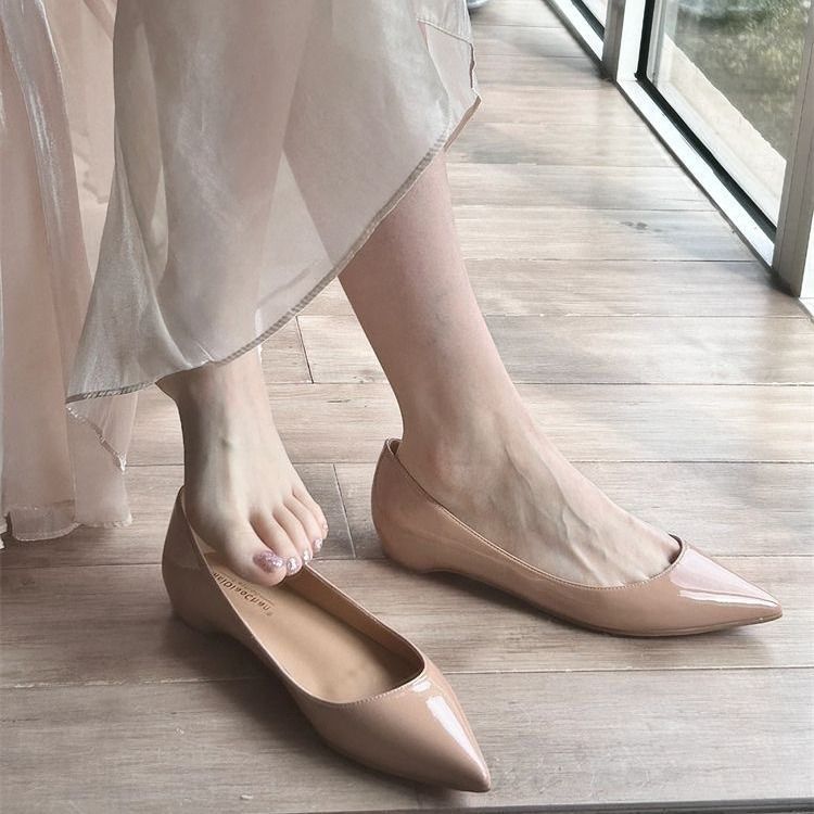 疲れない足の黒い坂とファッションの靴2025春の新型の尖ったハイヒールの漆皮の職業の女性の靴