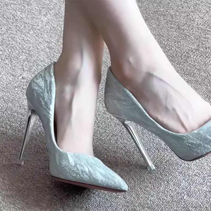 金属の先の女性のデザイン感2025年の新型の黒いハイヒールのフランスの小さい大衆の気質の名媛のセクシーな細いヒール