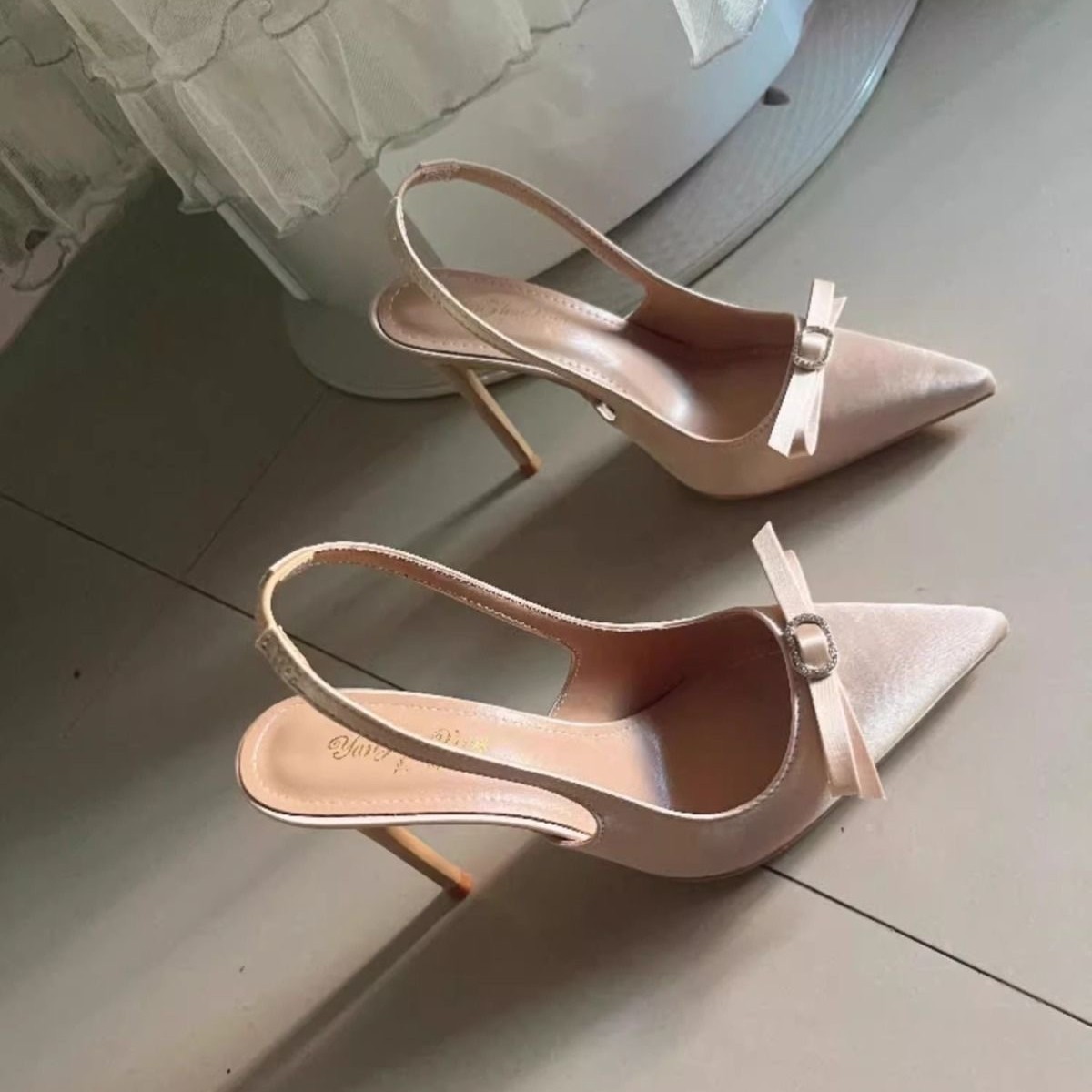 気質の靴の女性のデザイン感の小さい大衆の2024夏の新型の網の糸のレースの先の細い靴とハイヒールはスカートを配合します。