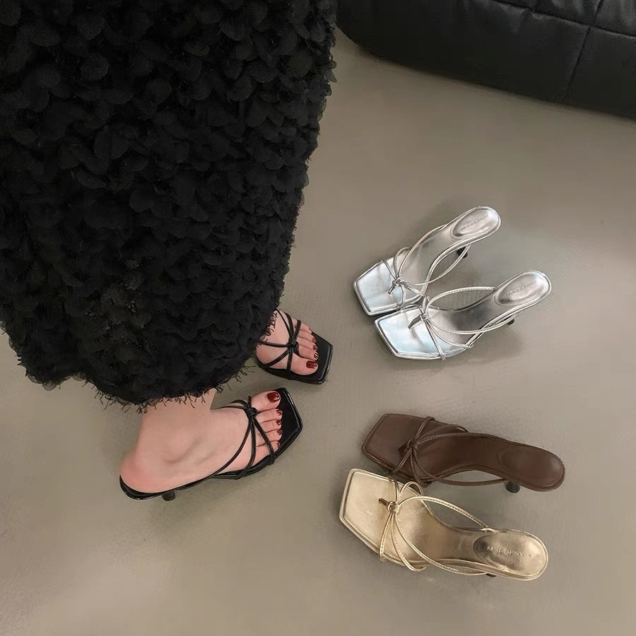 絶美坂とハイヒールのサンダルの女性は夏に2025の新型のスカートのフランスの気質の1字のサンダルを着ます。
